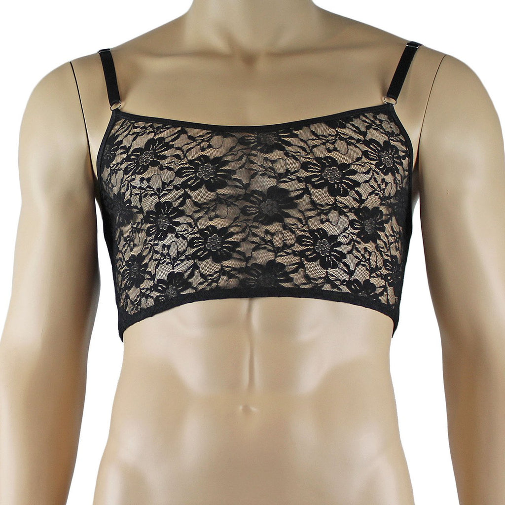 Mens Sexy Lace Crop Bra Top Camisole Black Male Lingerie Black
