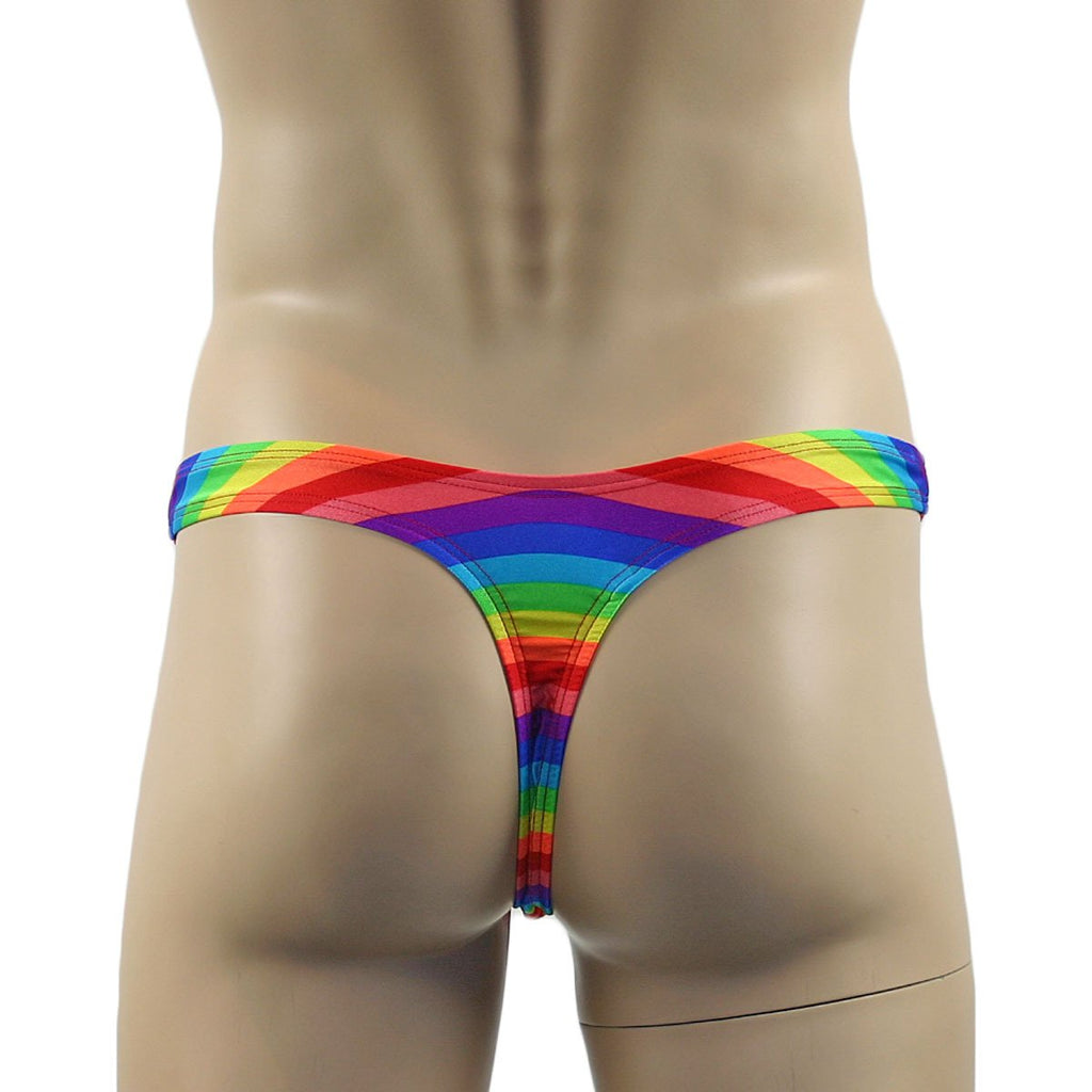 Mens stretch spandex rainbow patterned pouch front Thong with a wider front to cover all your bits and V shaped sides for a sexy shape, look your best dressed in this sexy thong