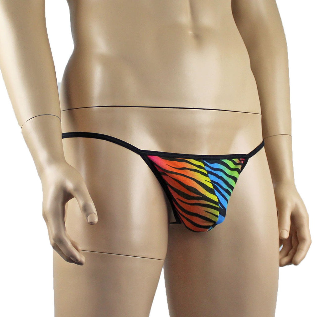 Mens stretch slightly see through zebra stripes mesh Pouch G string with elastic back and waistband