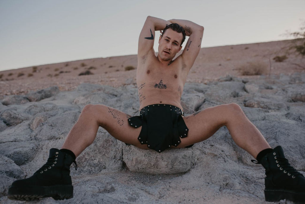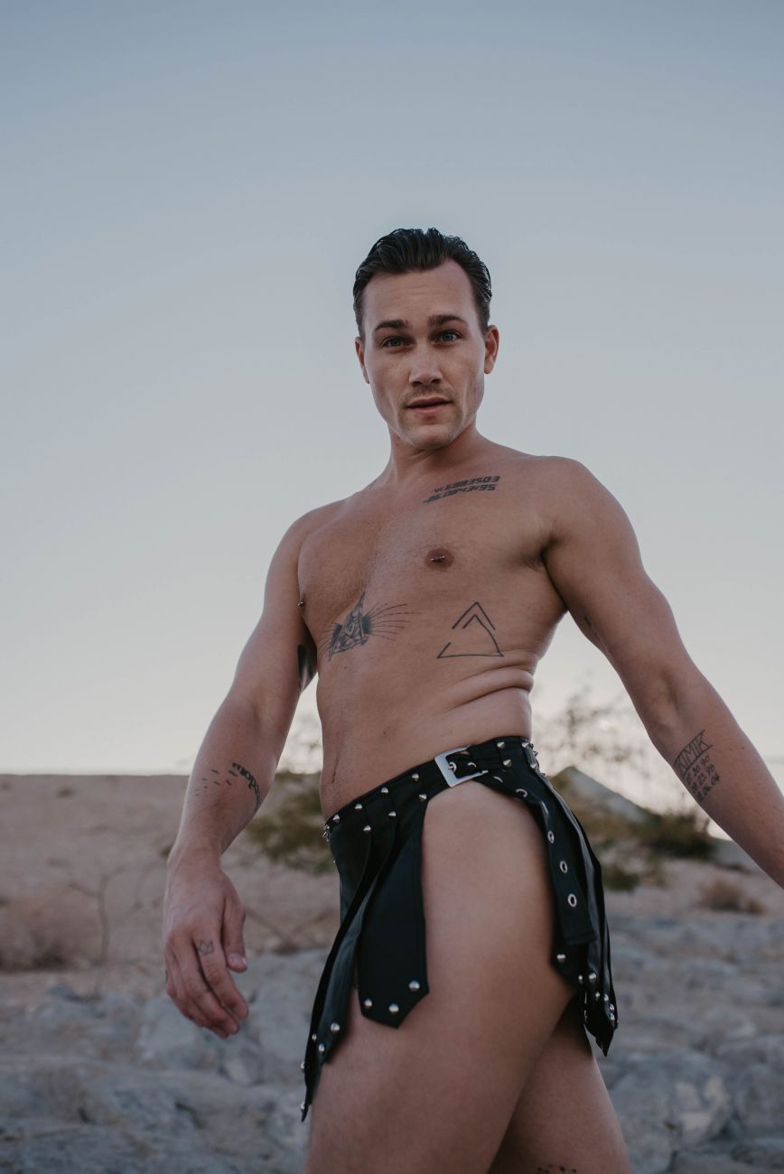 MaleBasics DMBL10 DNGEON Leather Look Roman Skirt Black