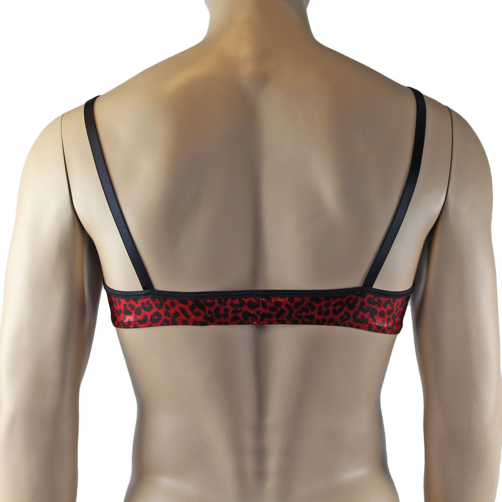 Mens dazzle animal leopard print Bra Top with a slightly contoured front but not busty, has elastic adjustable shoulder straps and satin bow front, easily slips on over the head