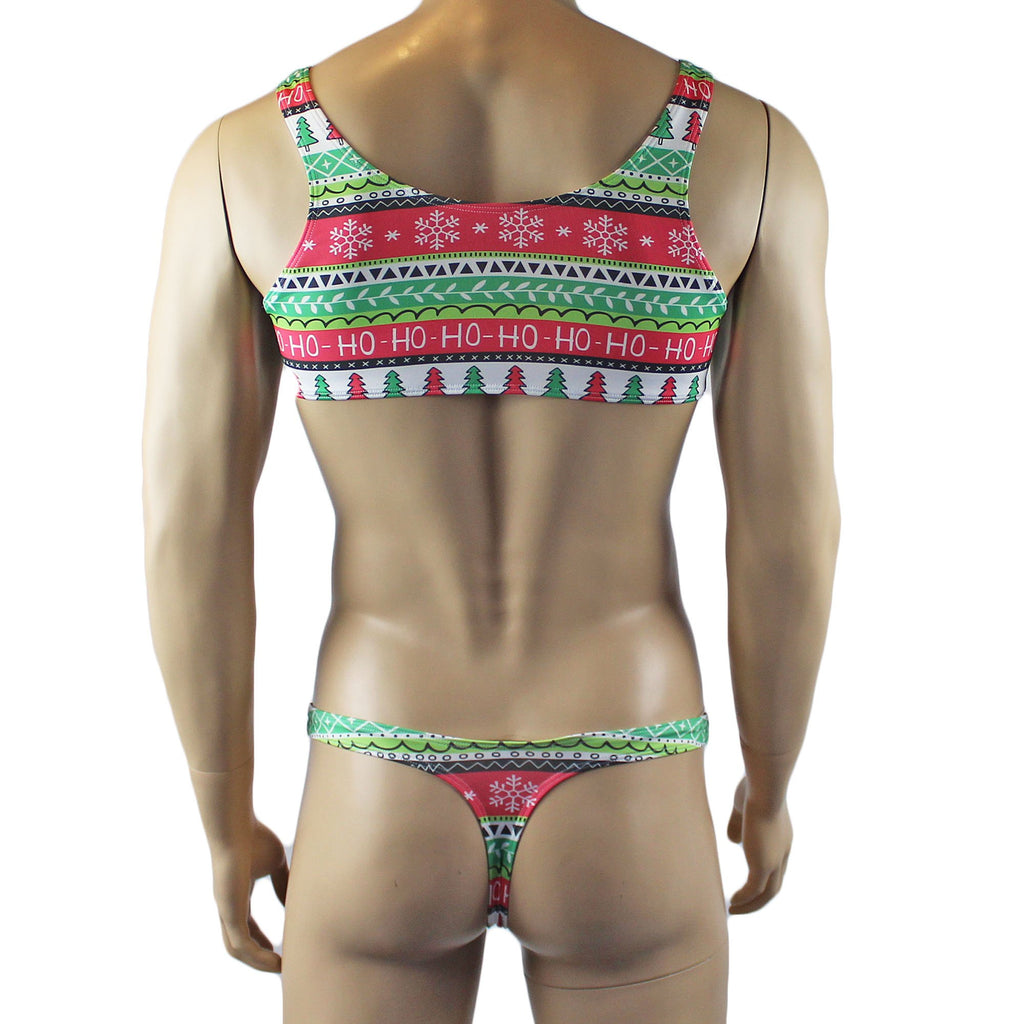Mens Christmas Gift Wrap stretch strong non see through spandex Crop Top Bra with elastic edges. Comes with a matching low rise G string Thong with elastic legs and waist, wrap your Christmas present in this and have fun when it gets opened. Can be used in the swimming pool too!