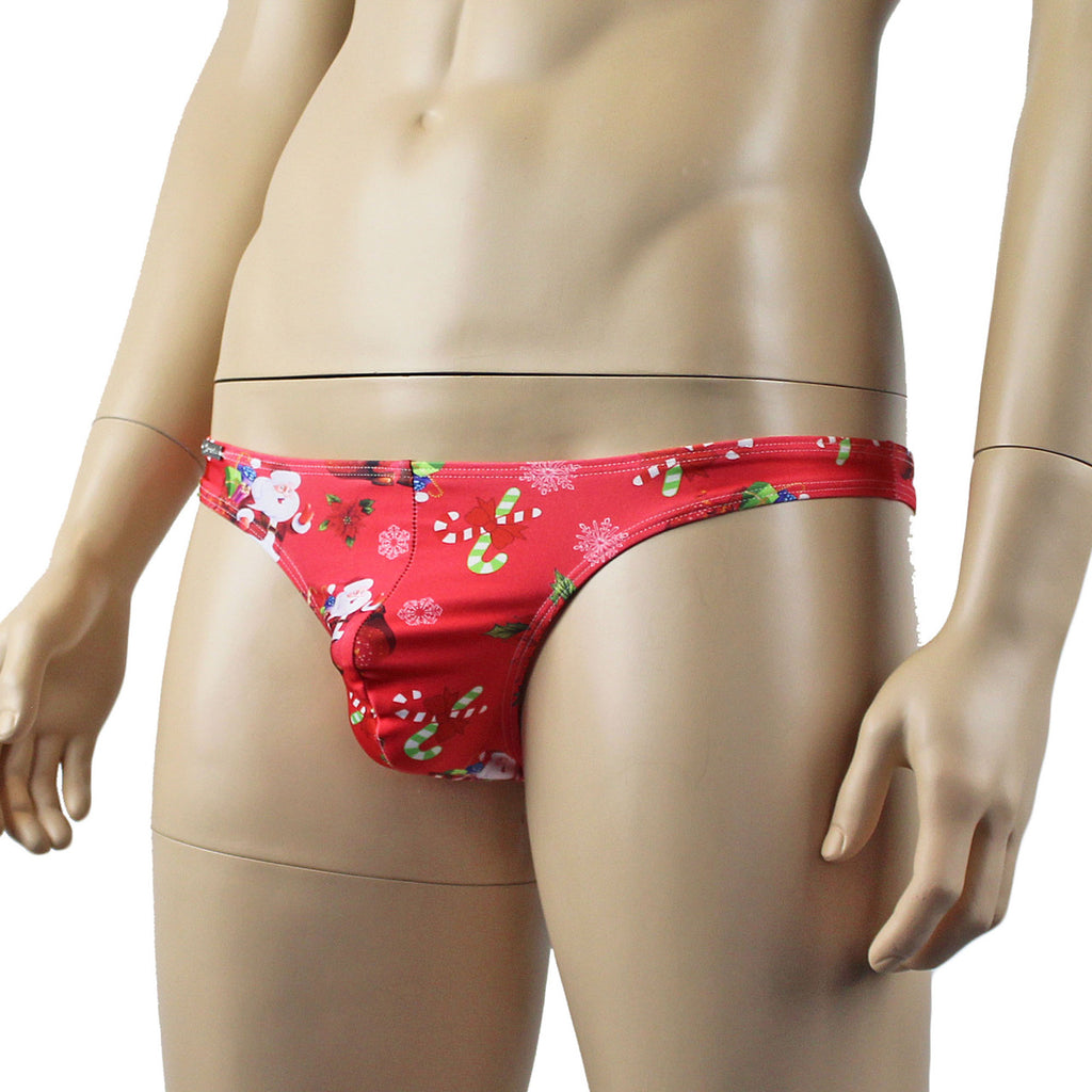 Mens stretch Santa printed spandex G string Thong with elastic sides and waist, a cute little bow front. A great gift surprise for yourself or someone that you love.