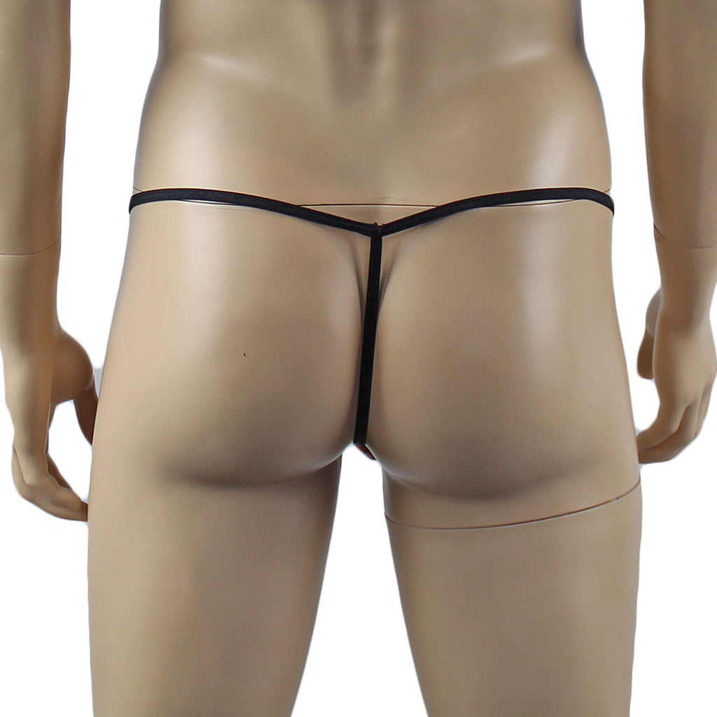 Mens Lingerie stretch leopard print dazzle pouch G string with thin elastic back and waistband, has satin bow front