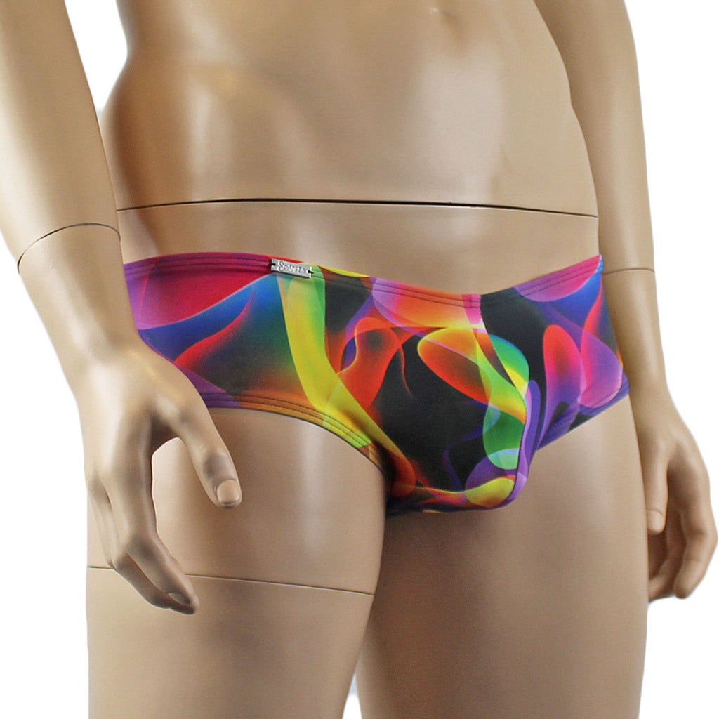 Mens stretch spandex festival colourful swirling smoke print spandex mini Boxer Briefs with pouch front and elastic legs and waist, a great festival outfit, party night or everyday wear. Can wear in the pool.