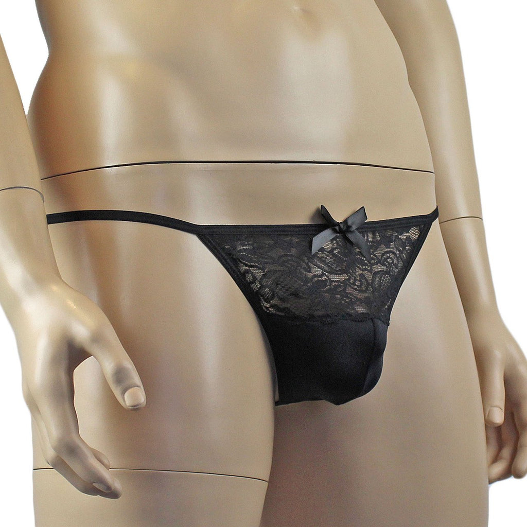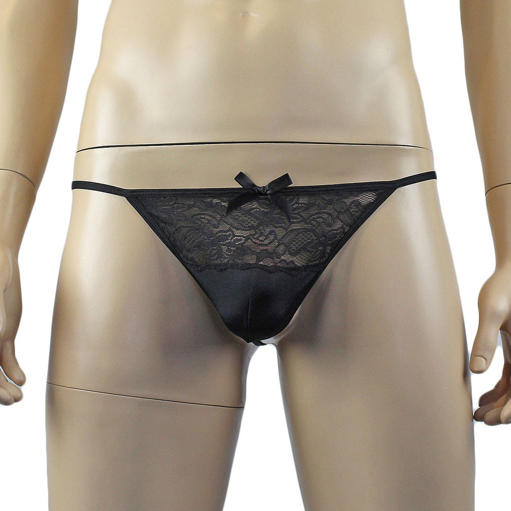 Mens glamour stretch lycra and floral stretch lace Pouch G string with V back and stretch elastic sides and top