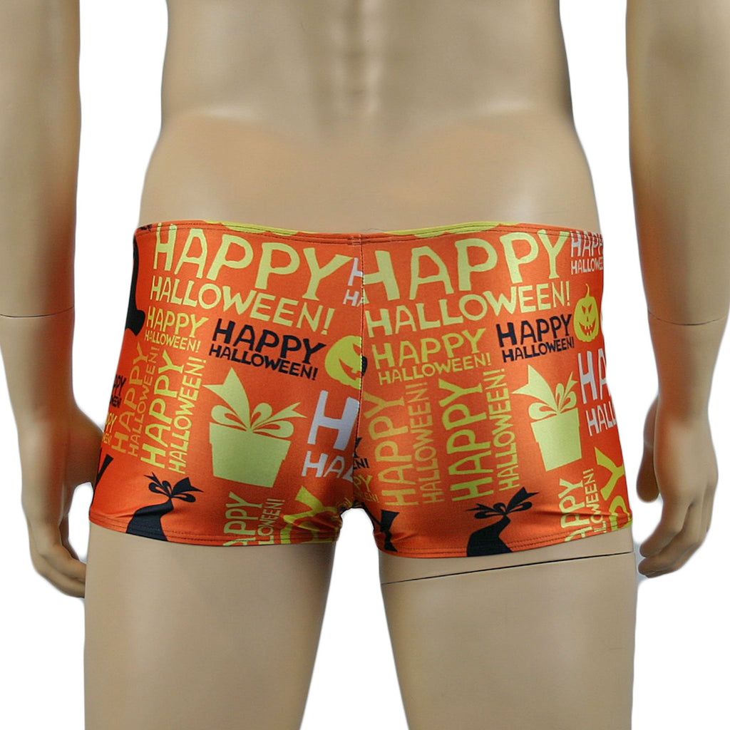Mens Halloween hot Shorts underwear in stretch spandex lycra with a Happy Halloween print, have some fun trick or treating in this very naughty Boxer Brief