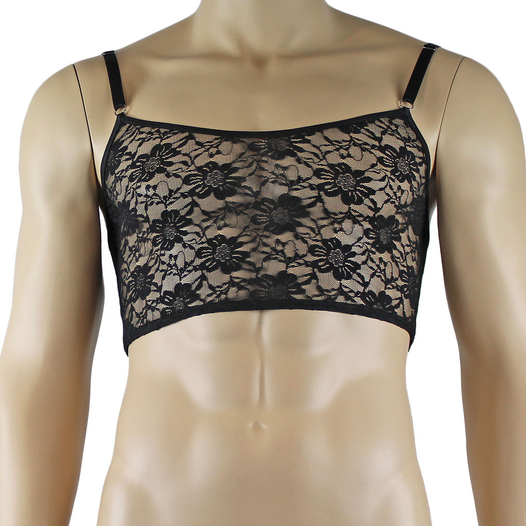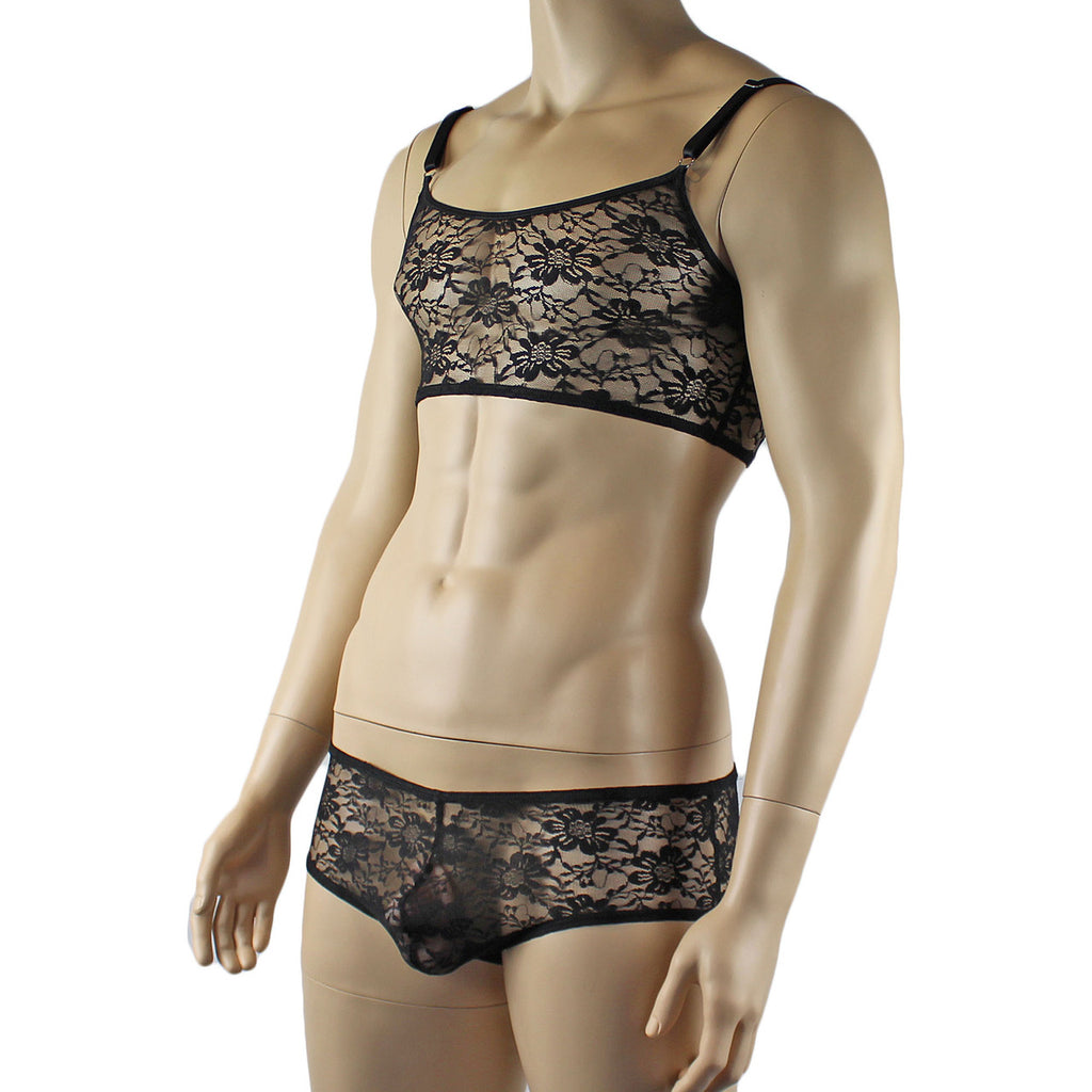 Mens Sexy Lace Crop Bra Top Camisole and Male Lingerie Panty Briefs Black