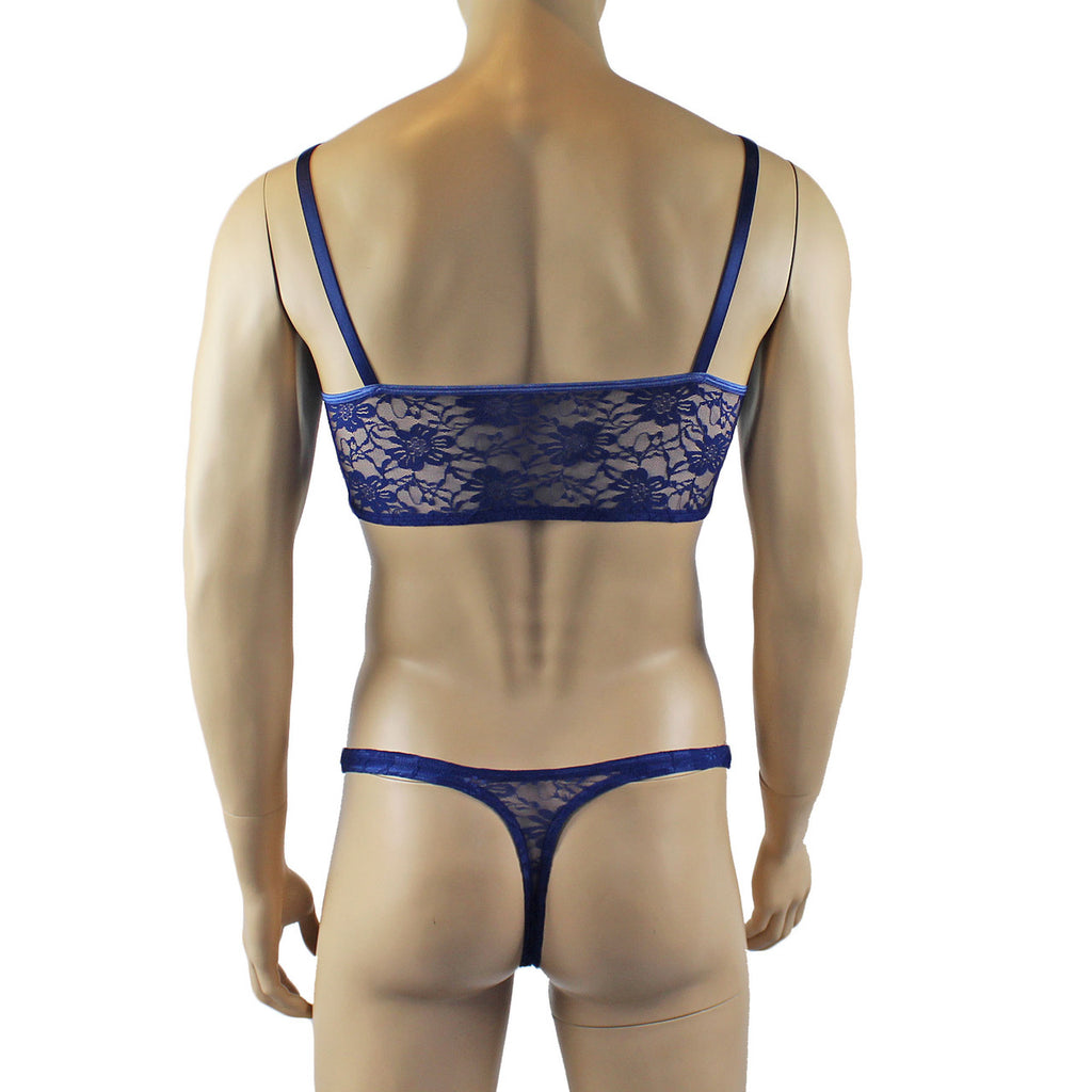 Mens sexy floral soft lace Crop Bra Top with elastic adjustable shoulder straps, comes with a matching Thong with elastic sides and top