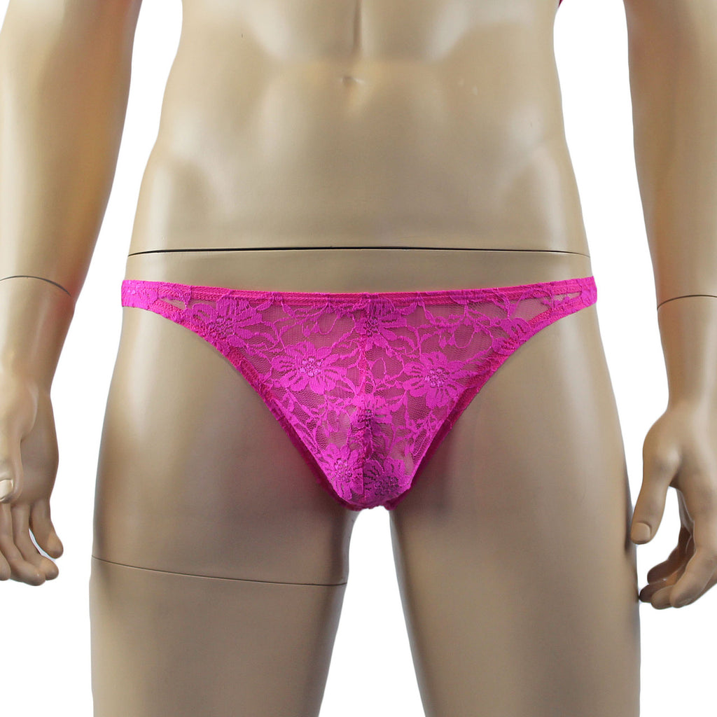 LAST ORDERS - Mens Sexy Lingerie Lace Thong G string Neon Pink