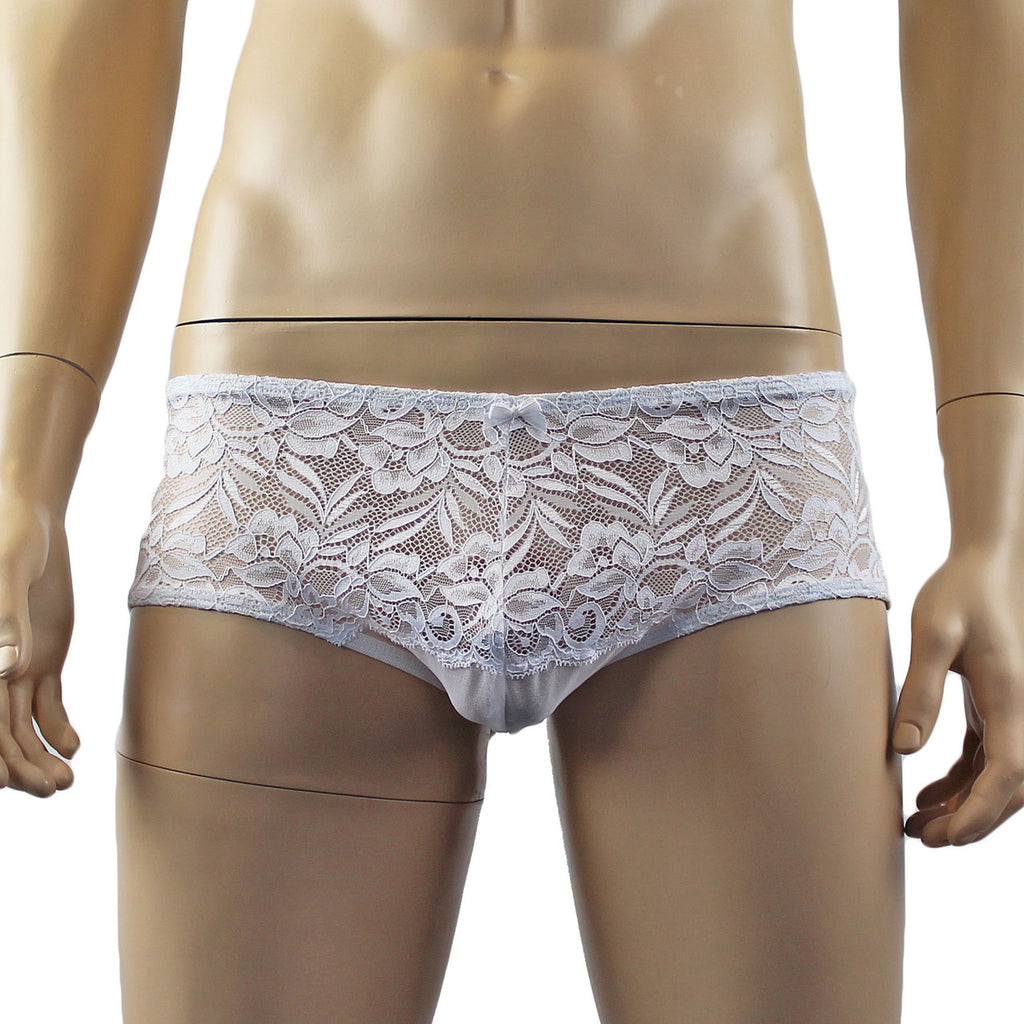 Mens Kristy Lingerie Sexy Lace and Mesh Panty Brief White