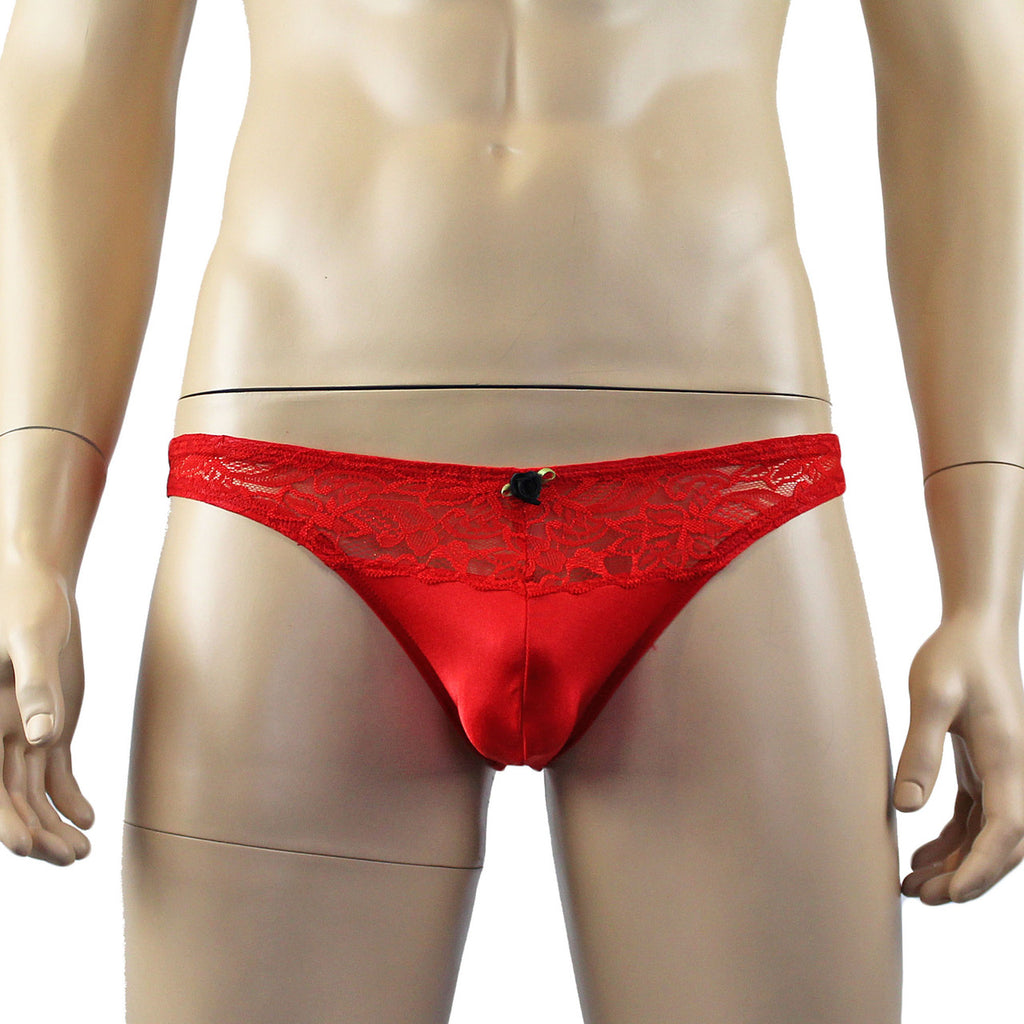 Male Penny Lingerie Stretch Spandex Capri Bikini with Lace Red