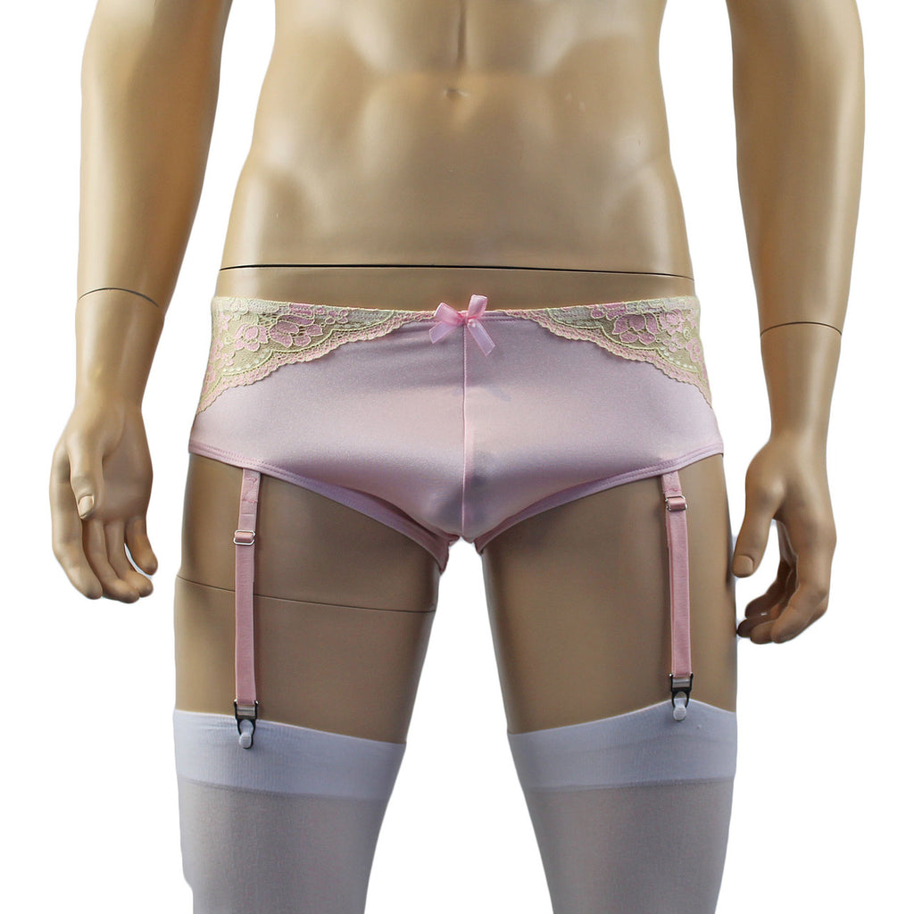 Mens Luxury Boxer Brief with Detachable Garters and Stockings Pink
