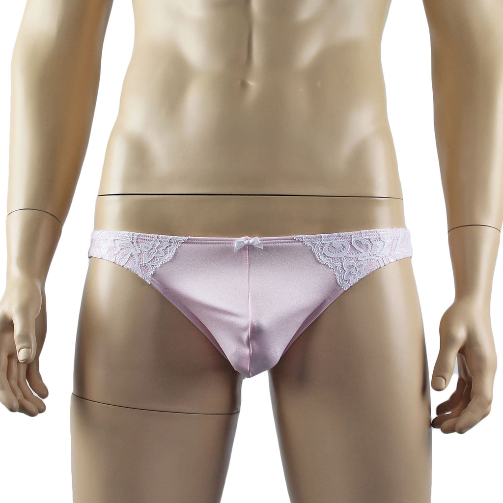 Mens Isabel Panty Stretch Spandex & Lace Bikini Brief with Sexy Back Light Pink and White Lace