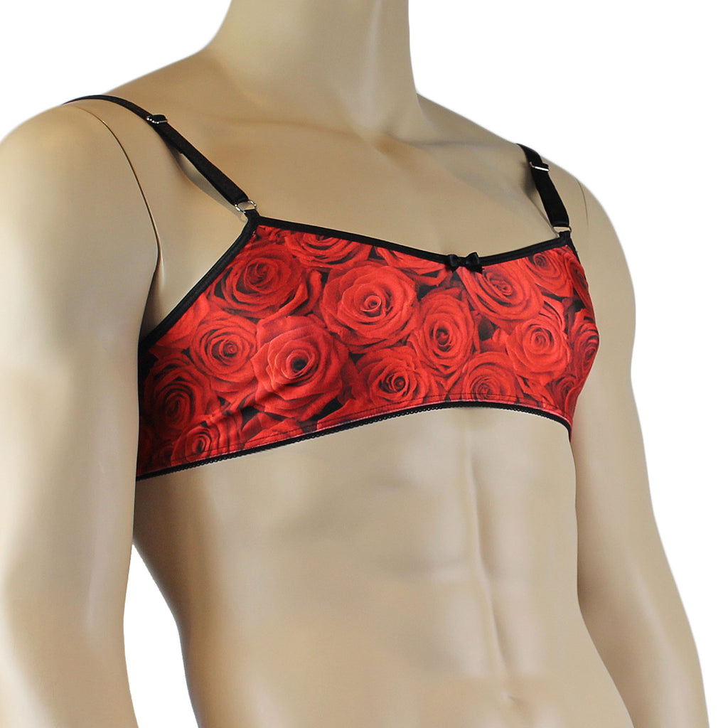 Mens Roses Spandex Bra Top with Frilled Pico Elastic Trim Male Lingerie Red