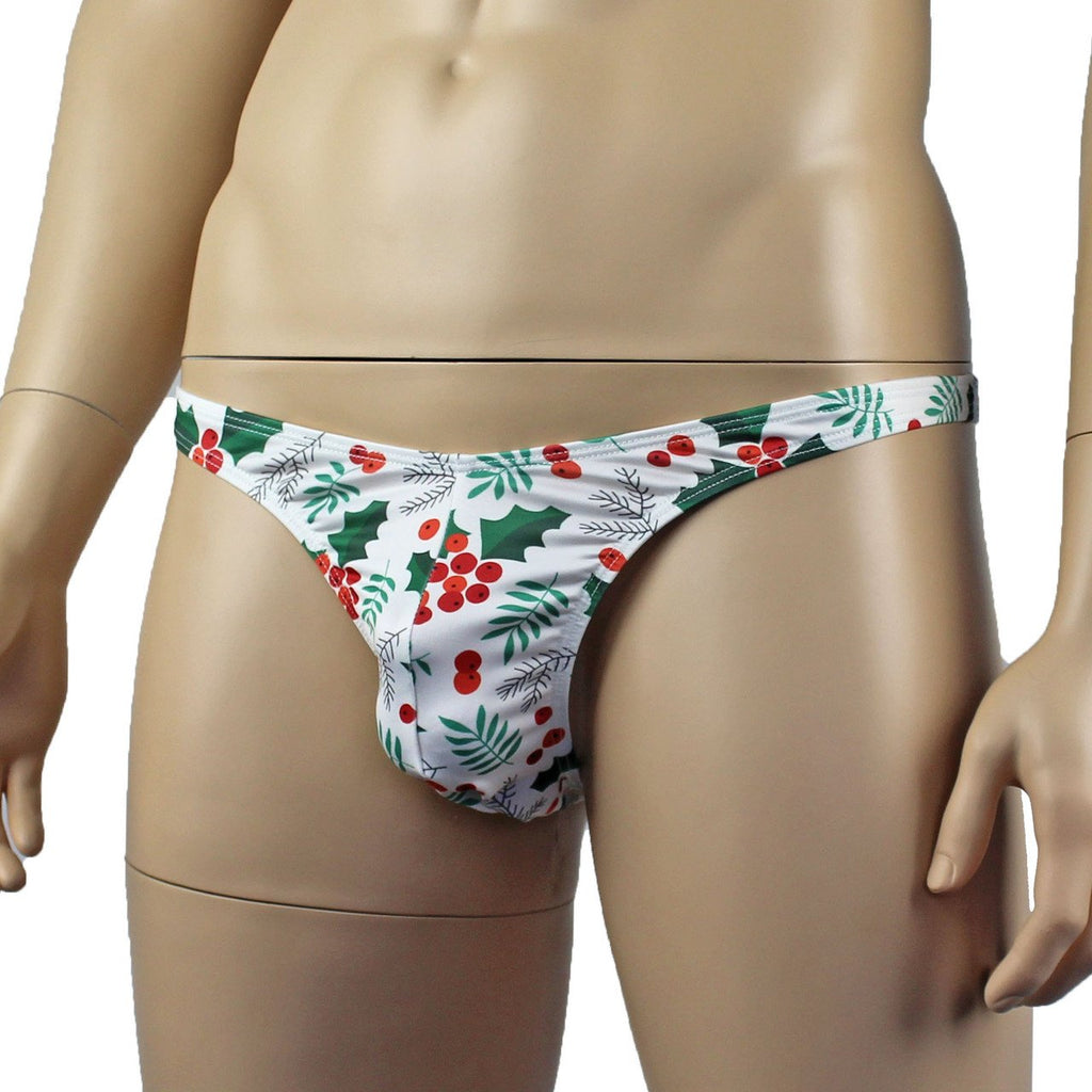 Dress up for Xmas in our mens stretch spandex Christmas Holly Thong G string, made with strong non see through spandex so you use in the swimming pool. Have fun gift wrapping your package in this sexy Thong