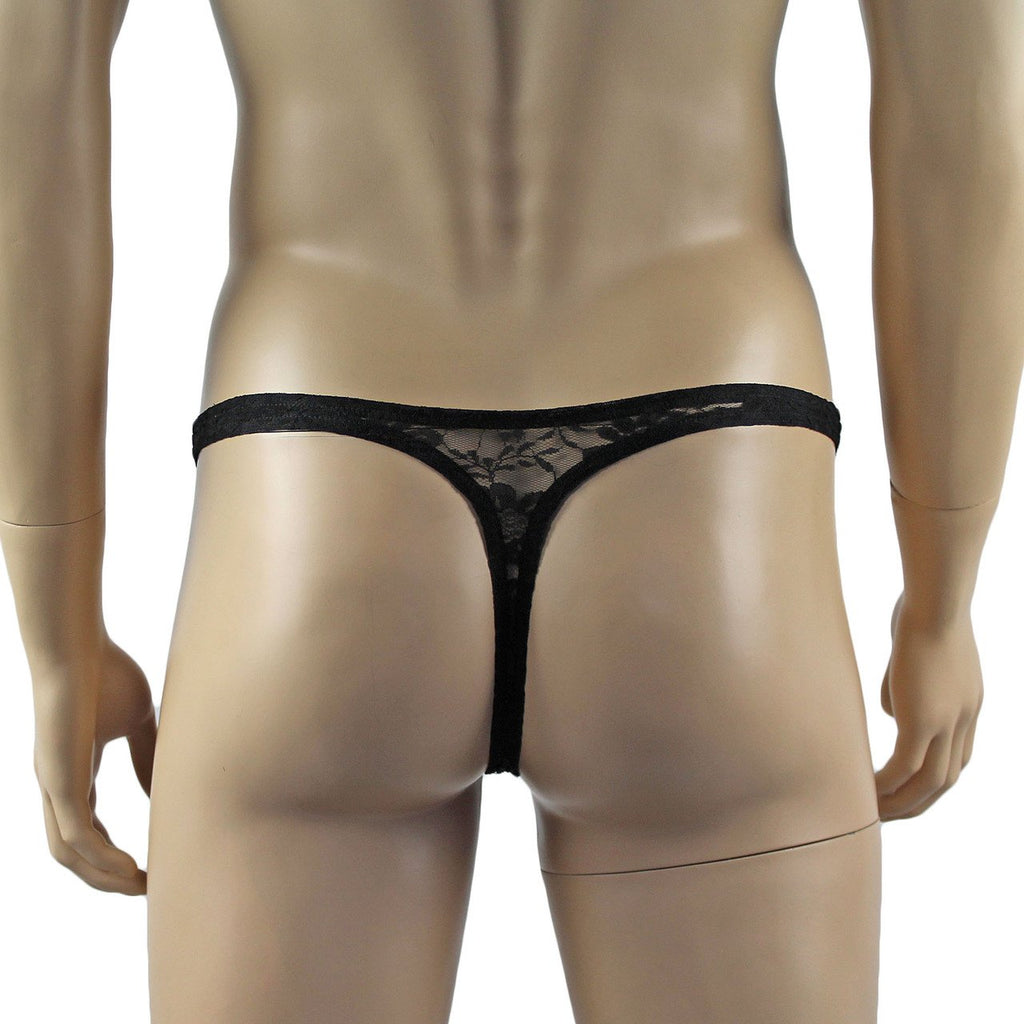 Mens Sexy Lingerie Lace Thong G string Black