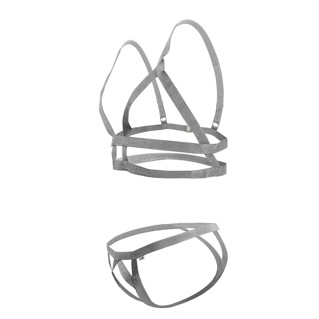 Unleash your boldest self with this ultra-daring harness and thong set! Designed for those who love to push the limits of style and confidence, this strappy masterpiece blends edgy design with a sleek, body-hugging fit. Whether you're making a statement or setting the mood, this set guarantees all eyes on you.