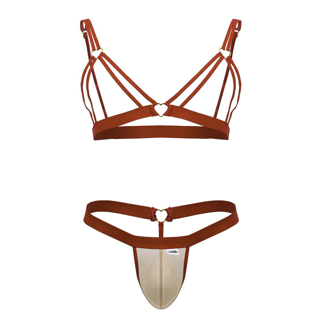 CandyMan 99838 Two Piece Outfit Mens Bra Set Red