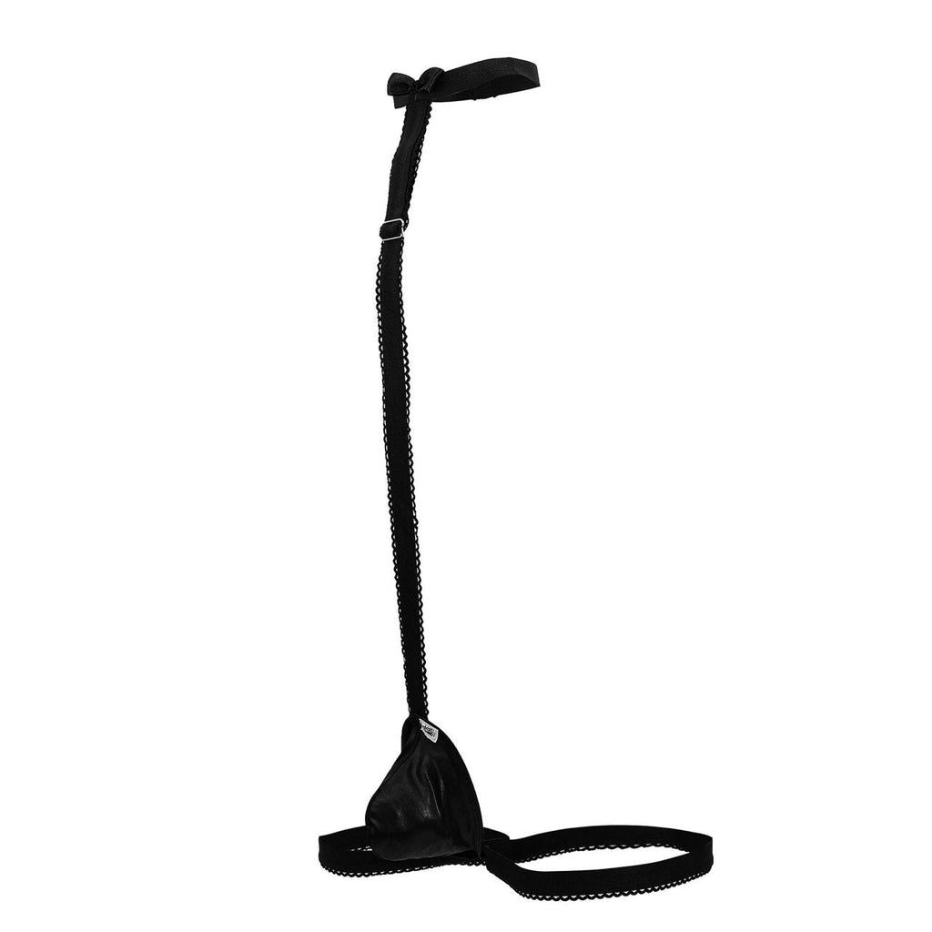Minimalist, bold, and dangerously seductive! This all-black body strap thong is designed for those who love to push the boundaries of confidence and style. Featuring a sleek halter-neck design that runs down the chest and connects to a daring thong, this look is all about owning the moment with bold sensuality. The wet-look pouch adds a sultry touch, while the open-back design ensures you leave a lasting impression.