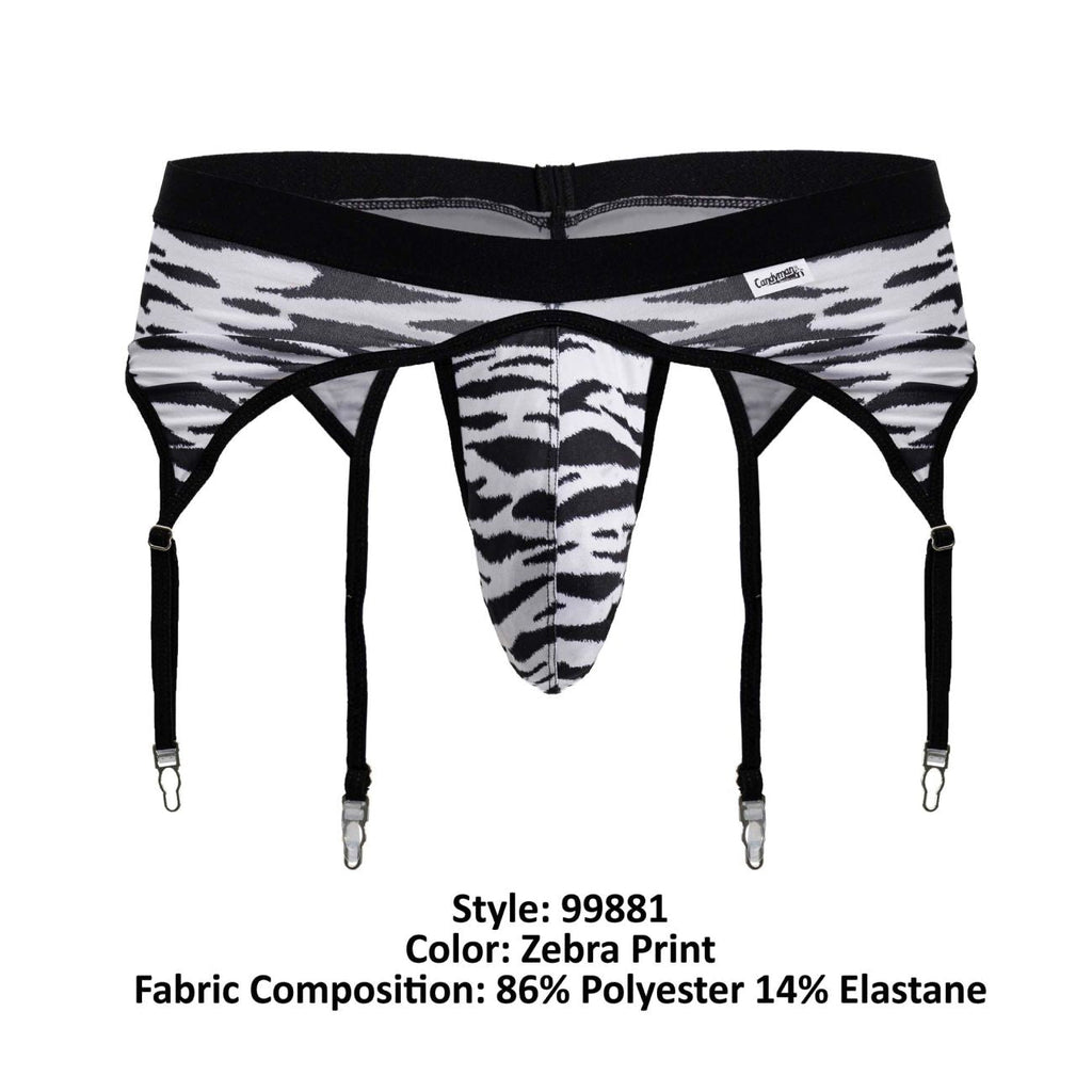 Make a fearless fashion statement with this men's garter brief. Featuring a bold black-and-white zebra pattern, detachable garter straps, and a sleek low-rise cut, it blends wild style with a sensual edge. The supportive pouch and stretchy fabric provide comfort while the adjustable garters invite you to pair it with your favorite thigh-highs for an unforgettable look.