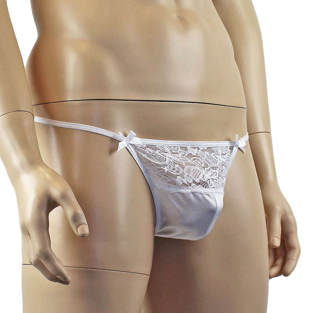 Mens romance & sexy stretch satin spandex Pouch G string with floral lace front, sexy triangle back and double bows on the front.