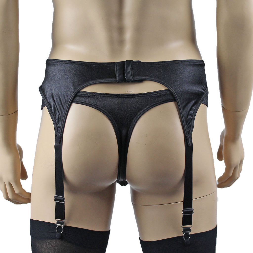 Male Romance Stretch Spandex Bra, G string Thong & Garterbelt Black