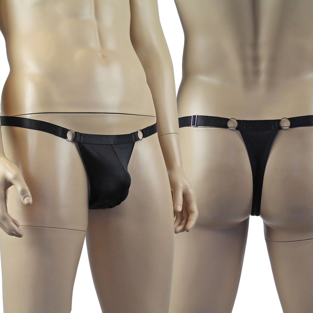 Male Jack Spandex Thong with Ring Sides and Adjustable Strap Black