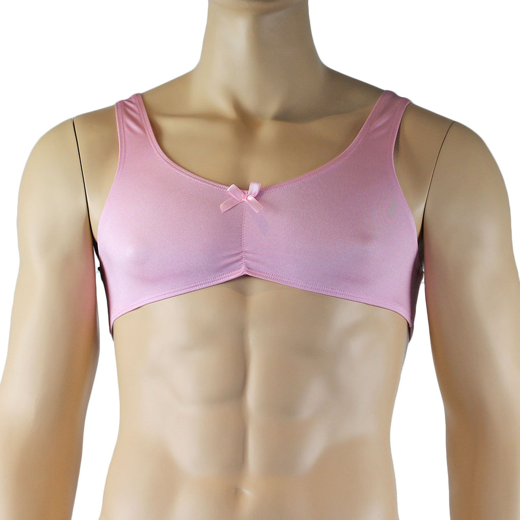 Male Angel Stretch Spandex Bra Top with Bow Pink
