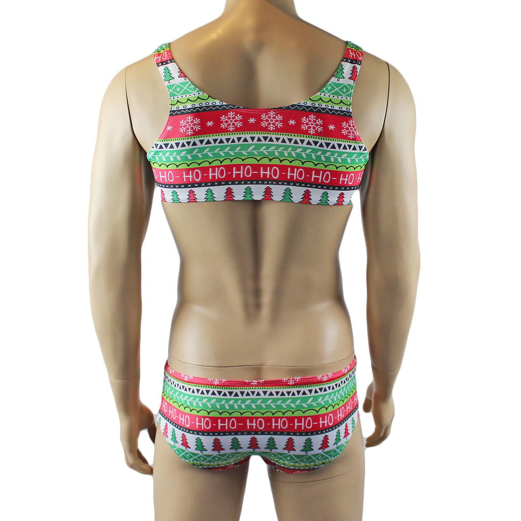 Mens Christmas Gift Wrap stretch strong non see through spandex Crop Top Bra with elastic edges. Comes with a matching low rise Boxer Brief Shorts with elastic legs and waist, wrap your Christmas present in this and have fun when it gets opened. Can be used in the swimming pool too!