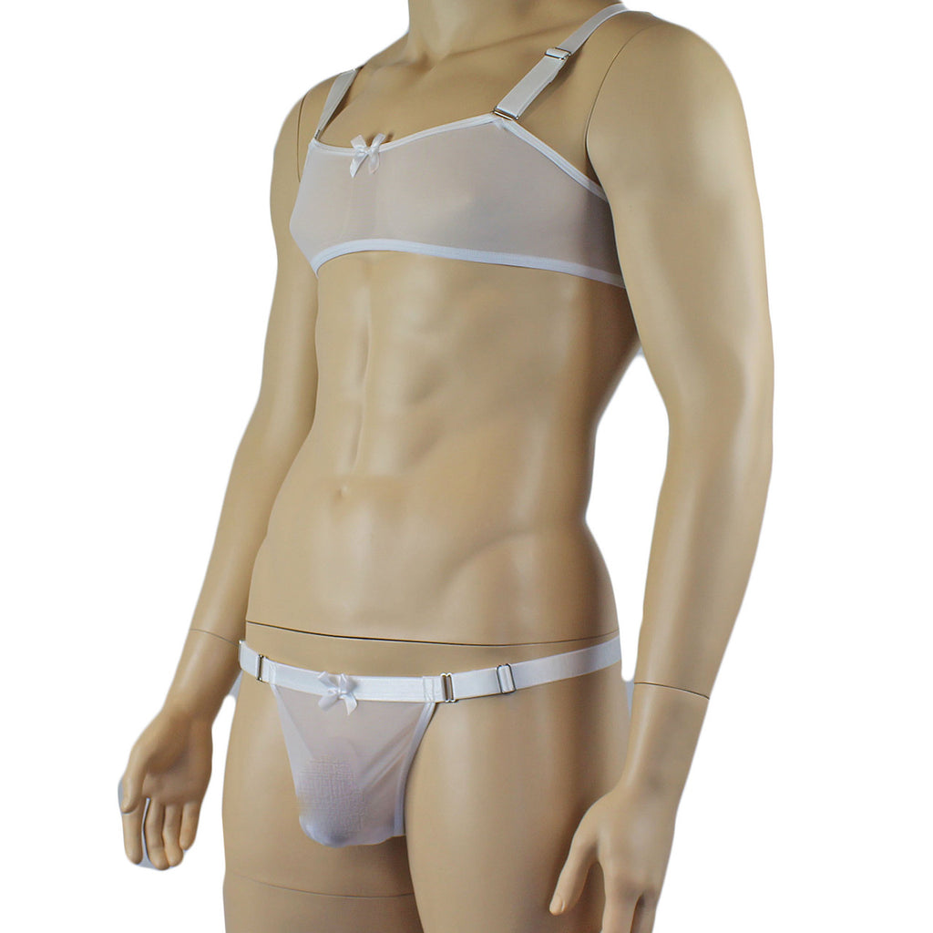 Mens Exotic Sheer Mesh Bra Top & G string White