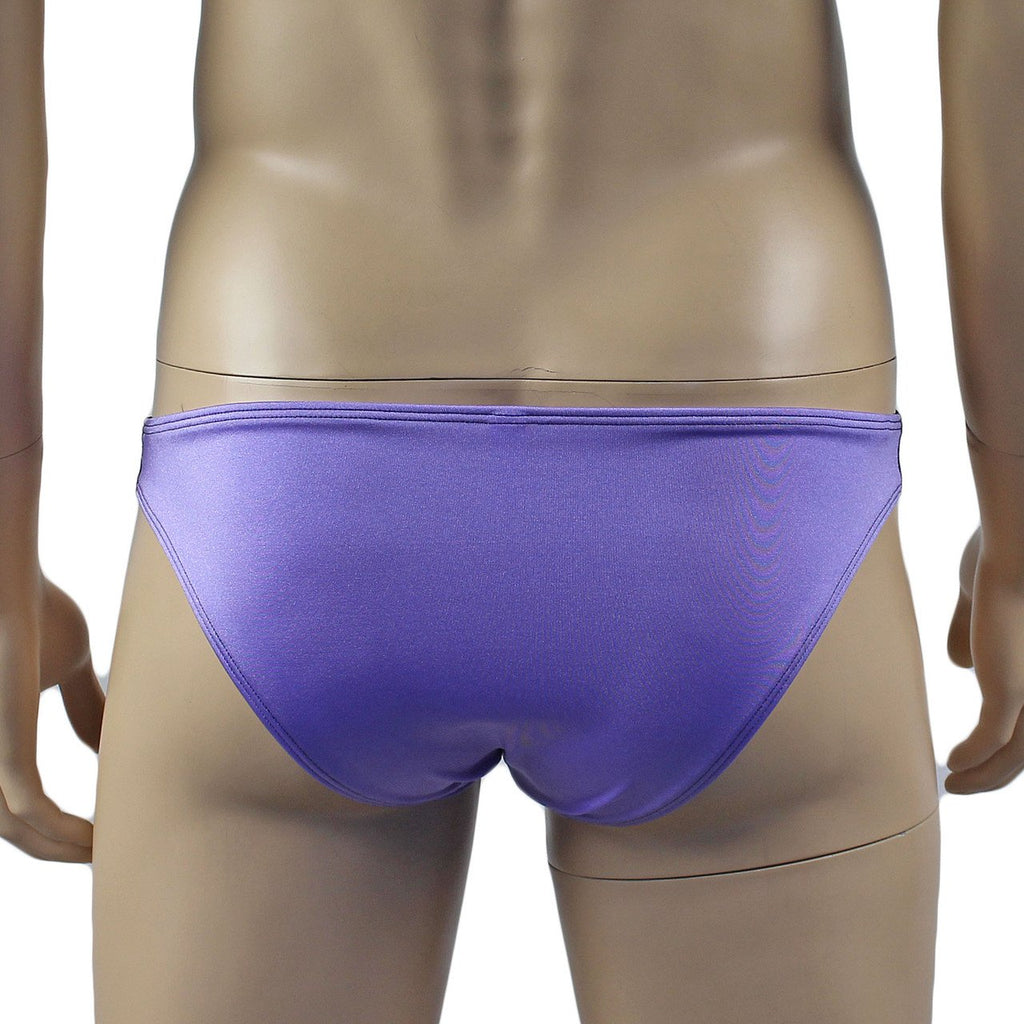 Mens stretch spandex lycra and floral lace wide front, high waist Bikini Brief Panty, has a contoured pouch front, lace inserts in the front and the back has a sexy back view, elasticized sides and waist and has a satin bow on the front. Comfortable and sexy.