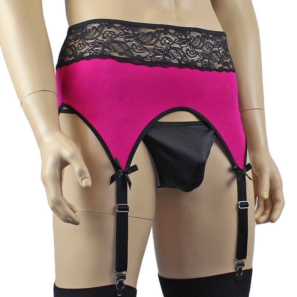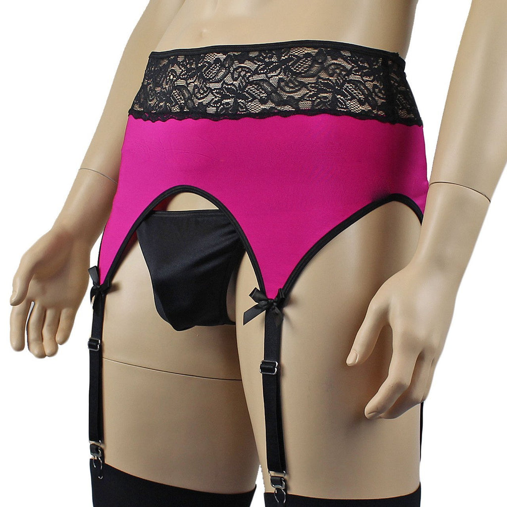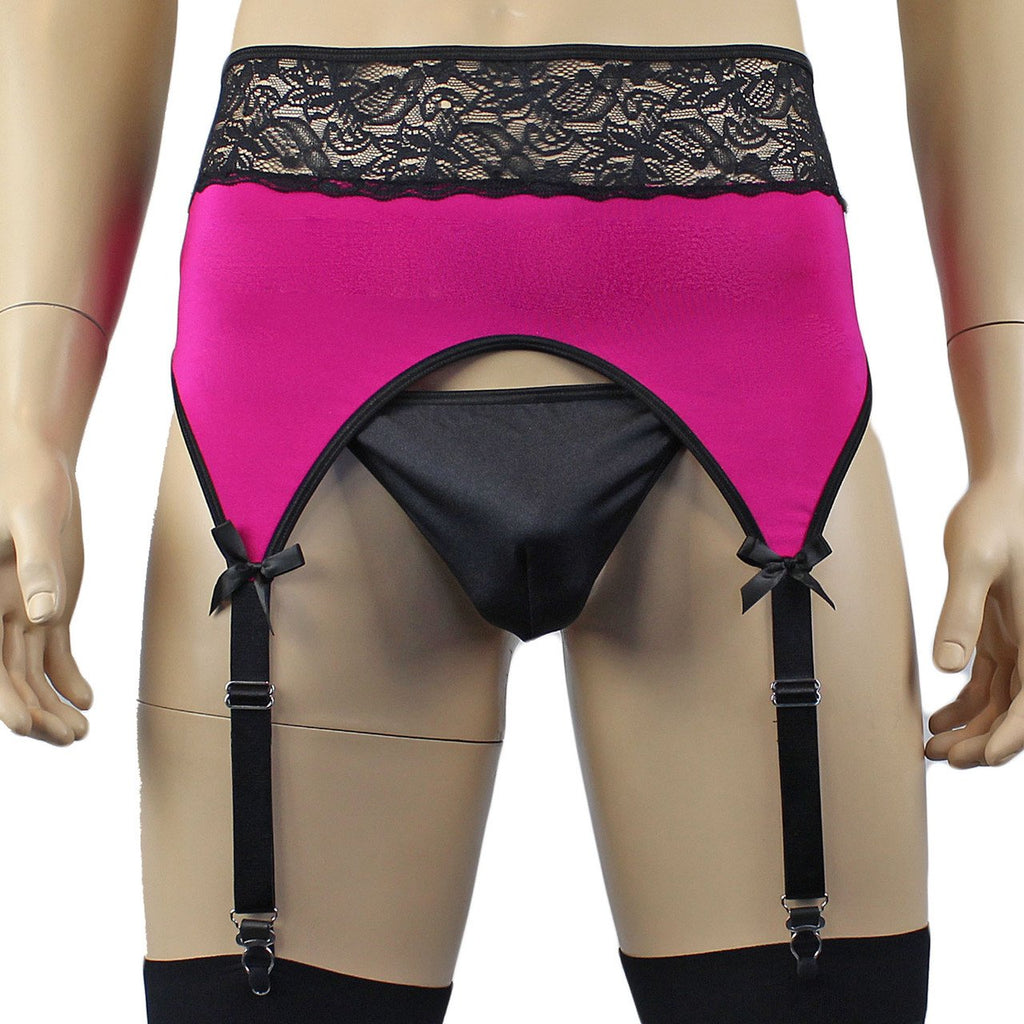 Mens Glamour Spandex & lace High Cut Garterbelt - Sizes up to 3XL Raspberry & Black