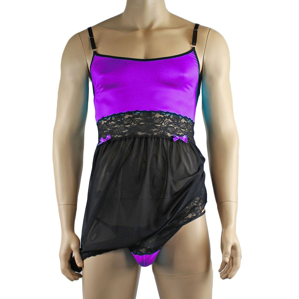 Mens Joanne Sexy Lingerie Nightwear Chemise with G string - Sizes up to 3XL Purple & Black