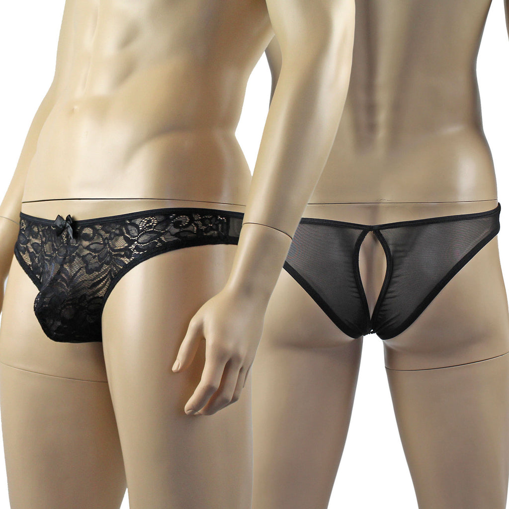 Mens Kristy Lace OPEN BACK Capri Brief, Male Panties (black plus other colours)