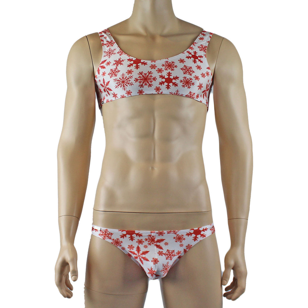 Mens Christmas Snowflake Bra Top & Low Cut Bikini Brief Red and White