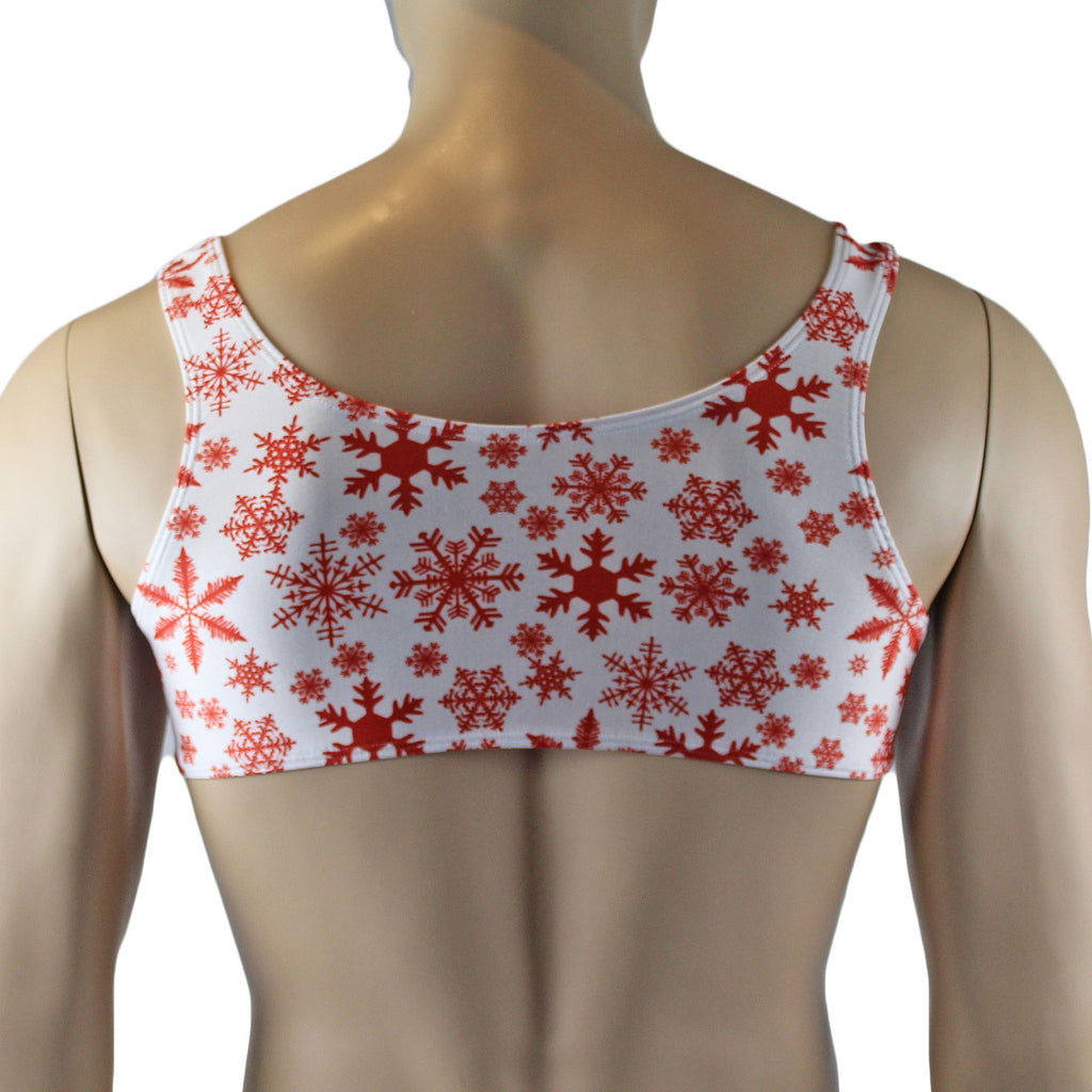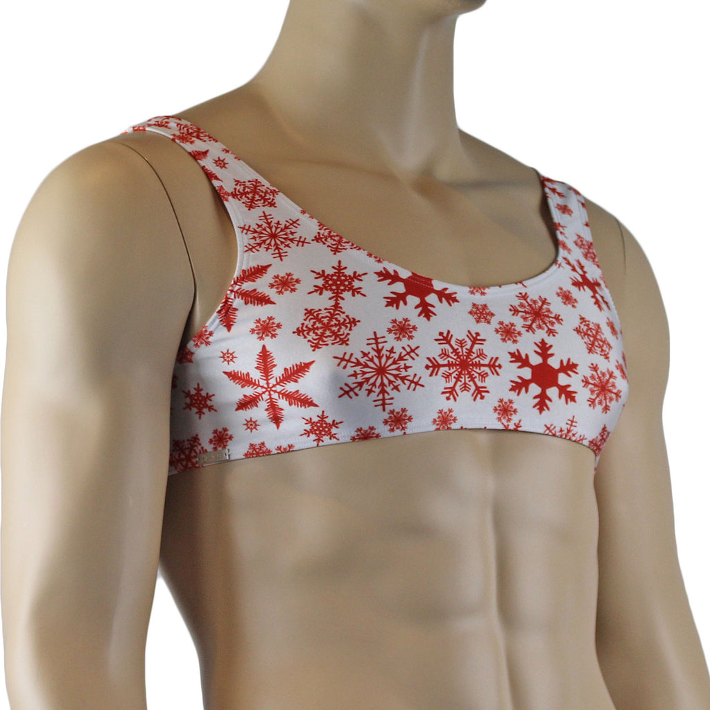 Mens stretch Snowflake print spandex Bra Crop Top with elastic around edges to hold in place, comfortable and easy to wear. Easily step into it or pull over your head