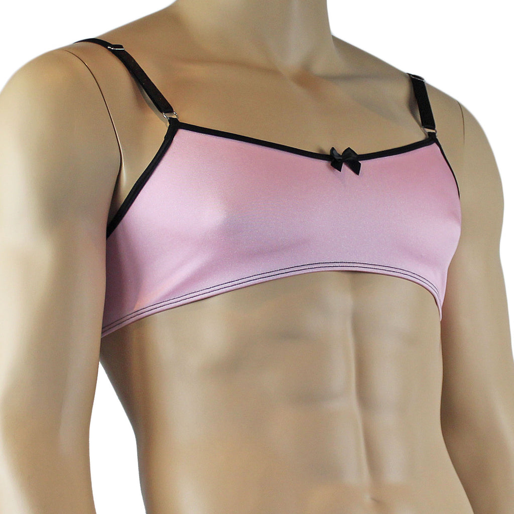 Mens sexy spandex Bra Top with contrast trim, adjustable shoulder straps and black bow front.