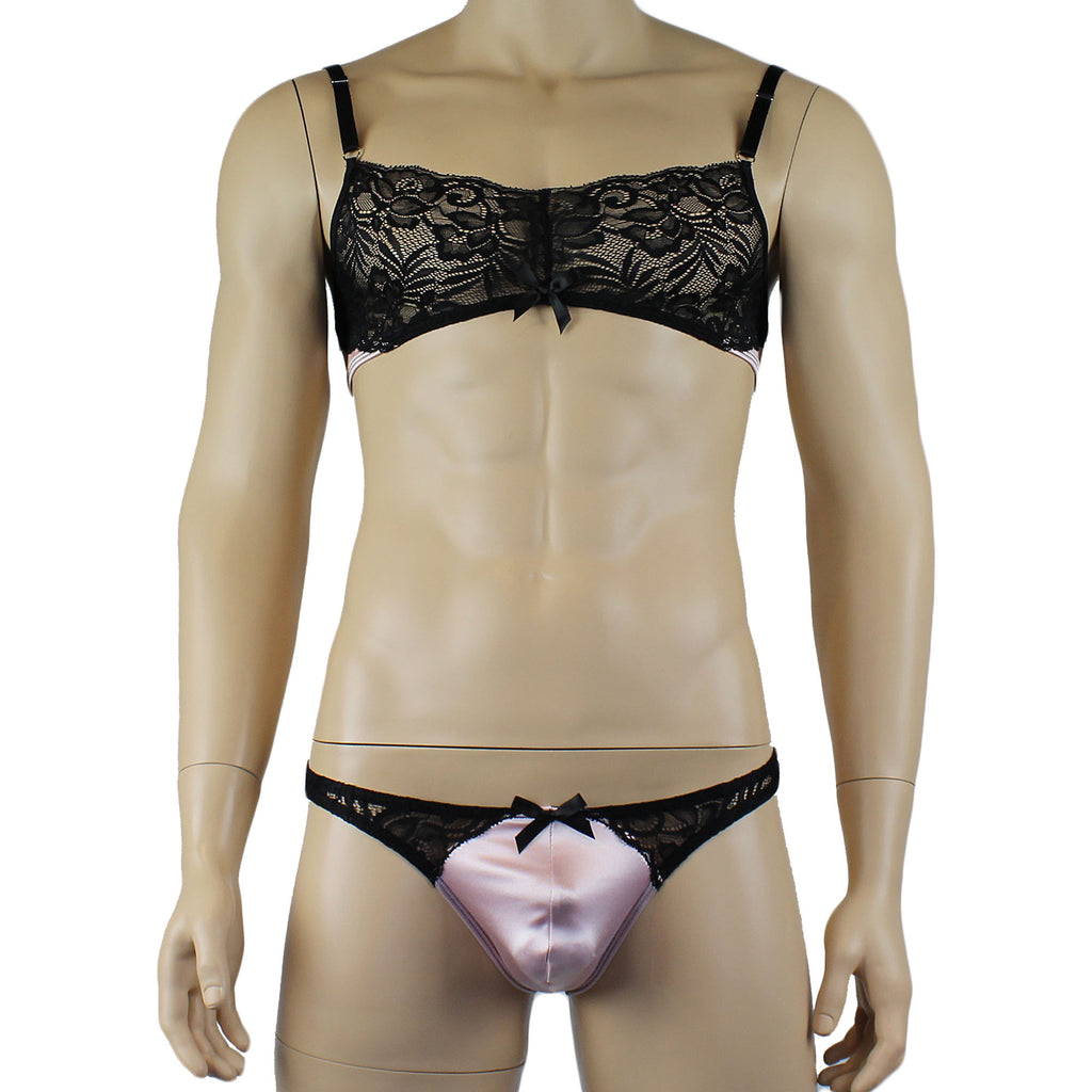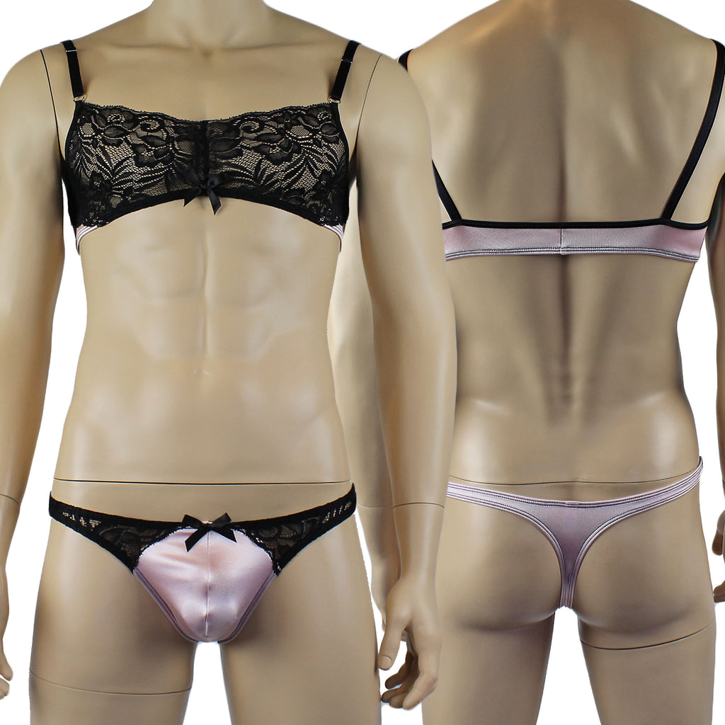 Mens Risque Bra Top and Thong Light Pink and Black Lace