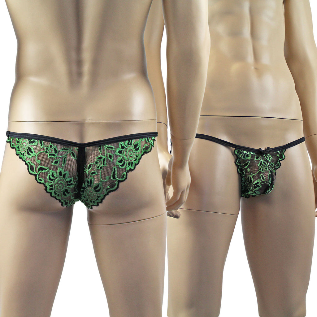 Mens Sassy OPEN BACK Bikini Brief, Male Panties Black & Green