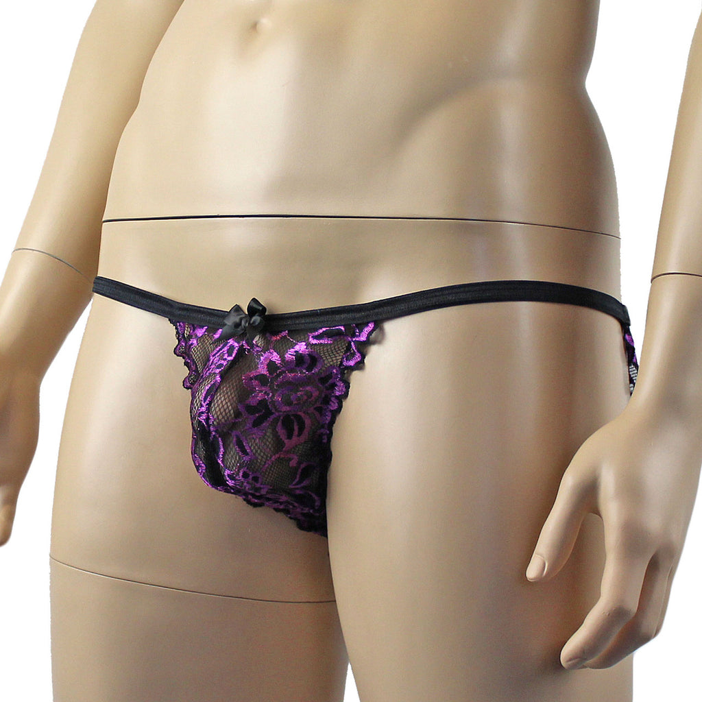Mens Sassy OPEN BACK Bikini Brief, Male Panties Black & Purple