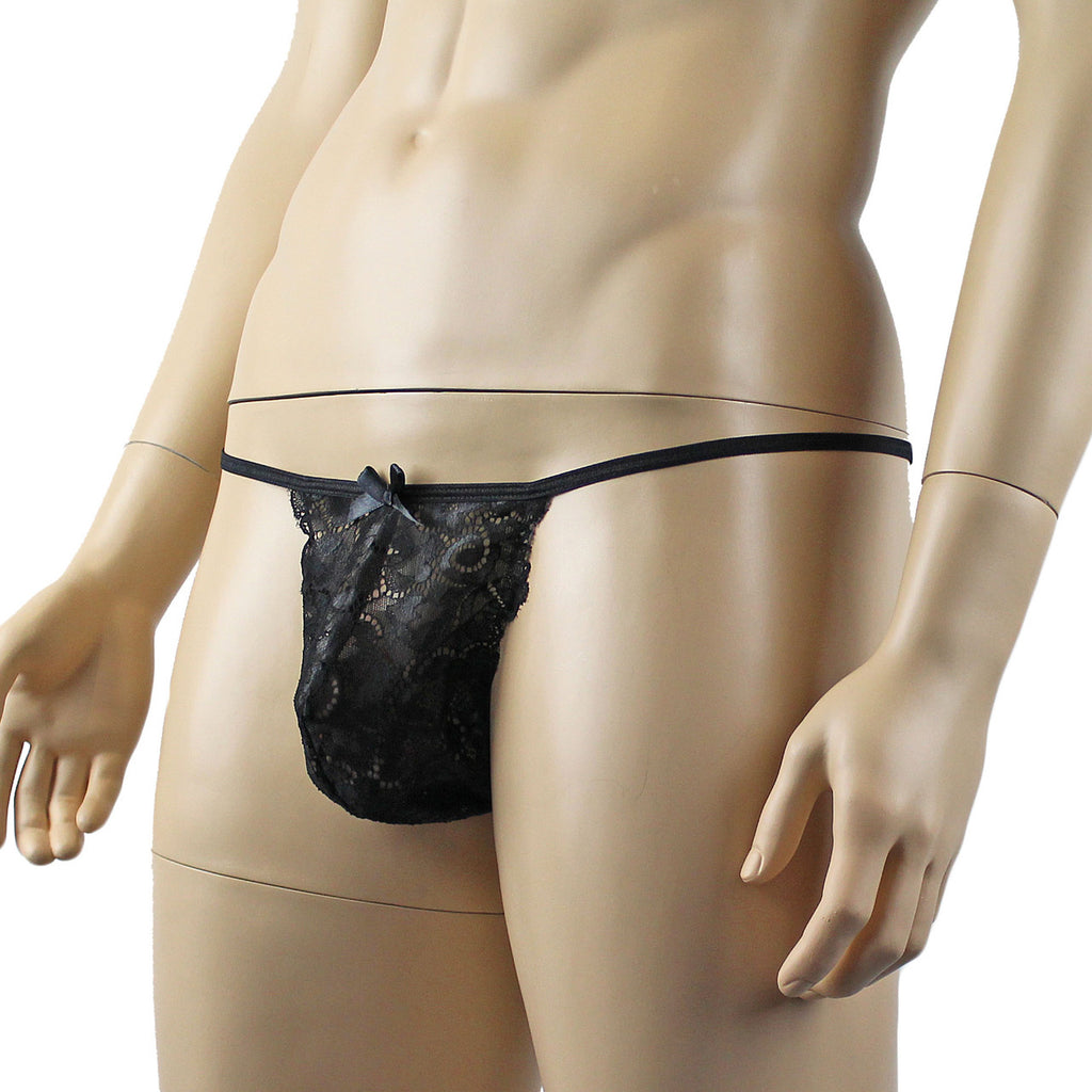 CandyMan 99903 Mens Strappy Geometric Mesh Thongs Black Plus Sizes