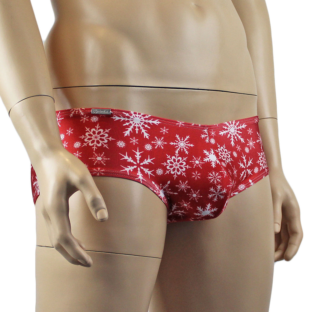 Mens Christmas Snowflake Print Spandex Low Cut Boxer Brief Red and White