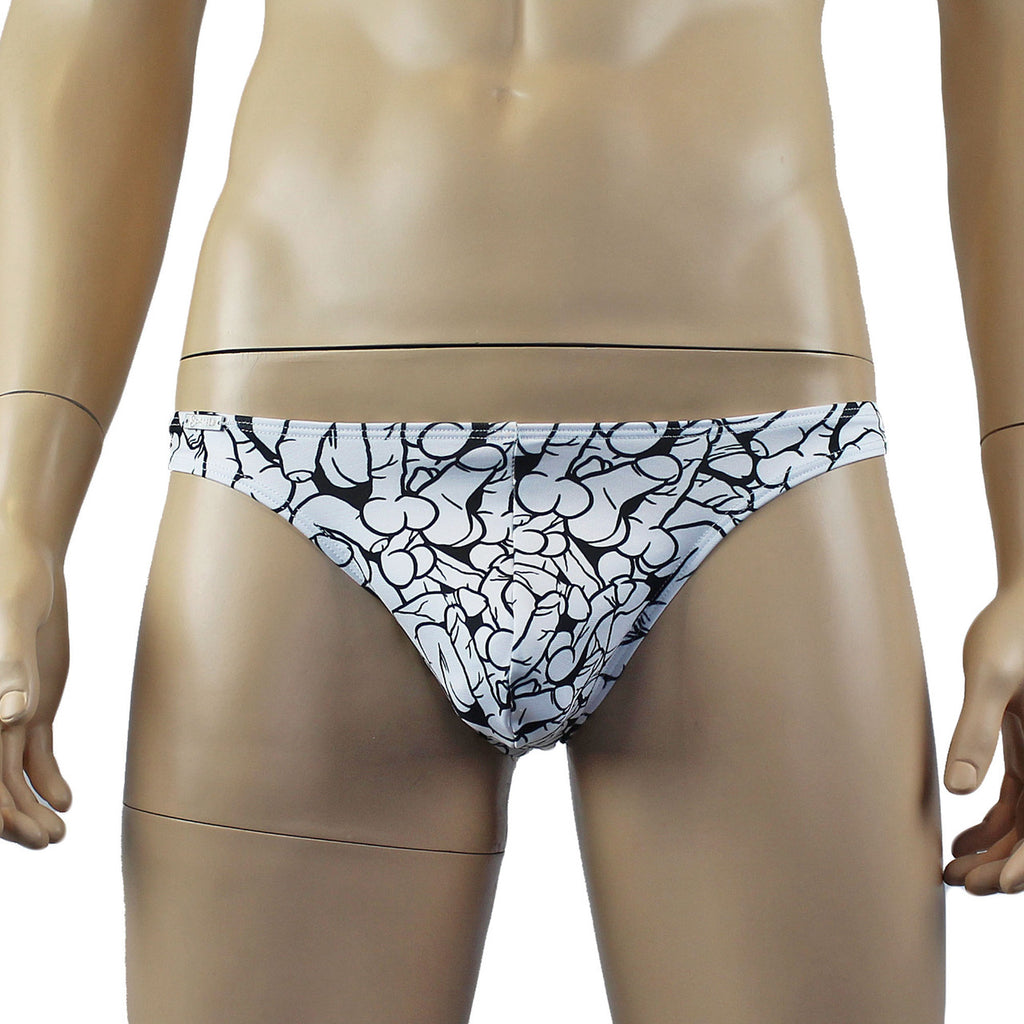 Mens stretch spandex penis print low rise Thong with elastic legs and waist, try this naughty and sexy Thong and show everyone what you have.